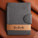 Meet our EcoScribe™ Notebook - an elegant and eco-friendly note-taking companion. This 6" x 8.5" notebook is crafted from recycled genuine leather and houses 96 lined pages made of 100% recycled 120-gram weight paper. With a perfect bound binding and a front snap button flap closure, it offers security and sophistication. Whether for work or personal use, this notebook combines sustainability with a luxurious appeal, making it an essential choice for your note-taking needs."