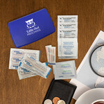 • Includes 4 latex-free bandages, 3 alcohol gel hand towelettes, 2 junior bandages, 2 antiseptic towelettes, 2 first aid antibiotic ointment packets, and a 2” x 3” large fabric bandage