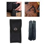 • Tools included: needle nose pliers, regular pliers, wire cutter, Phillips screwdriver, fish scale planer with ruler, flat screwdriver, nail file, knife blade, keychain, can opener, bottle opener, dagger, wood saw